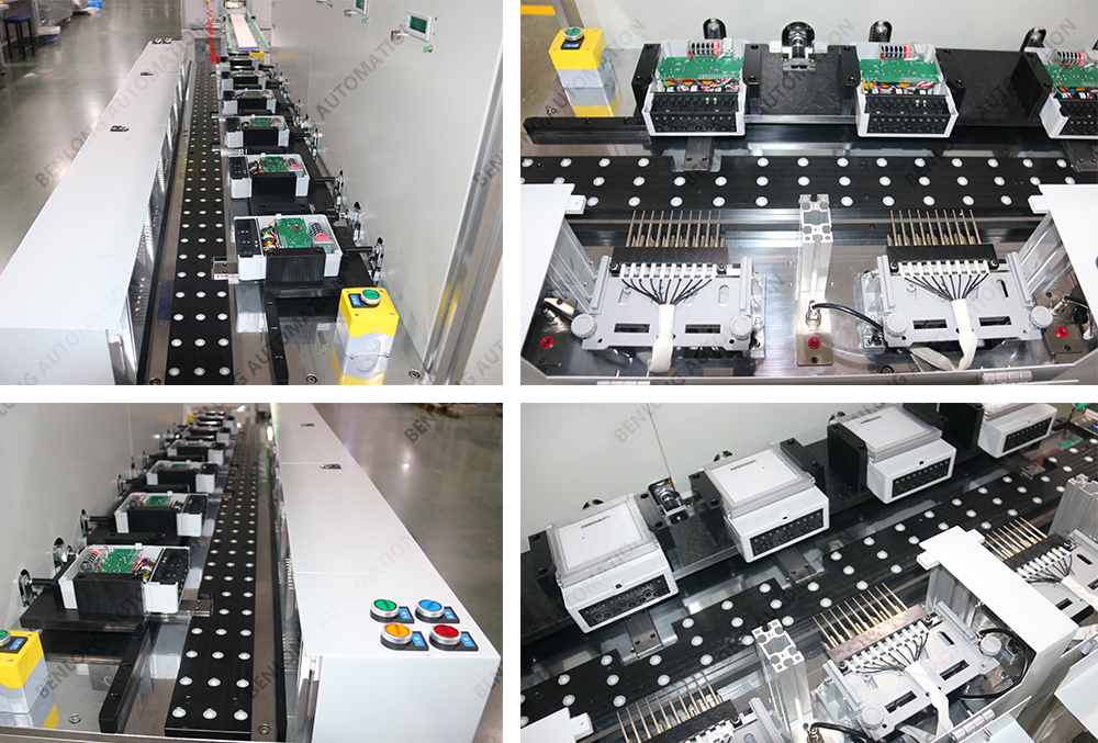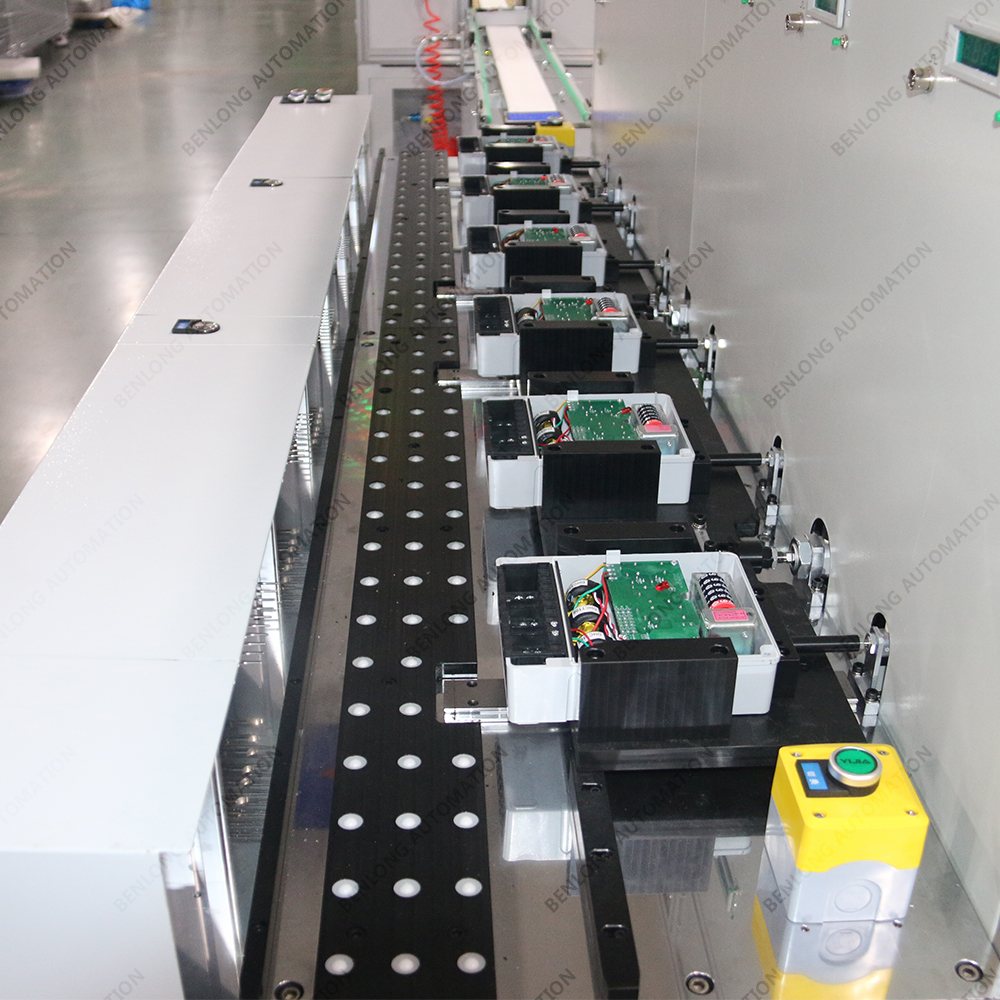 具有产品自动上料底座、装配导电柱、装配线路板、锡焊、锁螺丝、装配密封圈、装配玻璃罩、装配外圈、锁螺丝、特性检测、