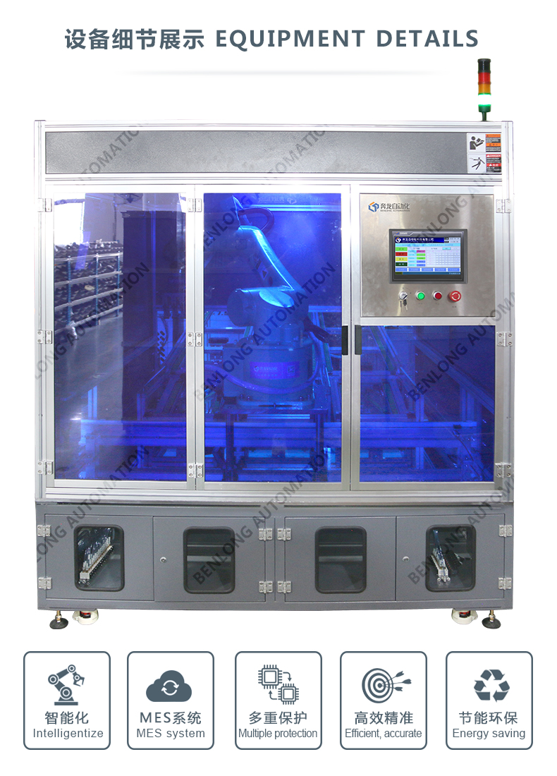 压、回路电阻、气密性检测、移印、激光标刻、CCD外观检测、合格不合格区分、包装、码垛、AGV物流、缺料报警等工序的装配、