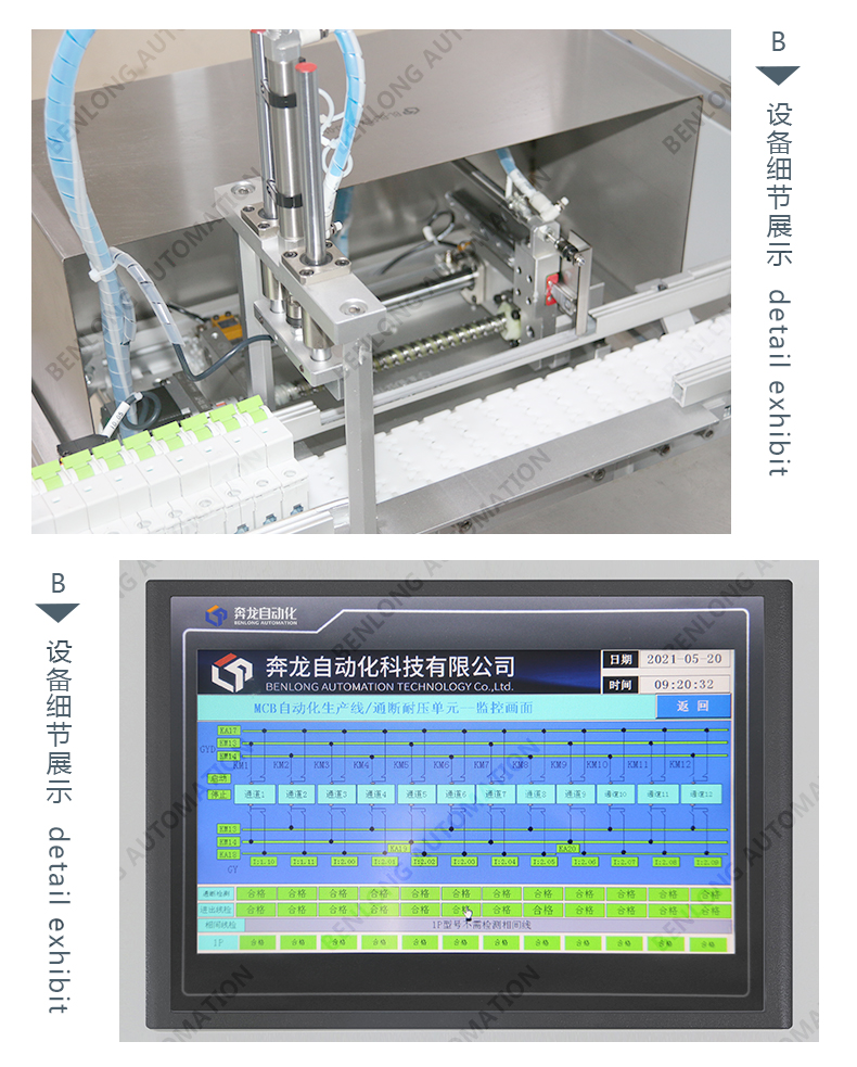 具有自动通断检测、耐压检测、不良品区分、缺料报警、不良品回流返工等工序的在线监测、实时监控、质量溯源、条码识别、关键元器件寿命监测、数据存储、