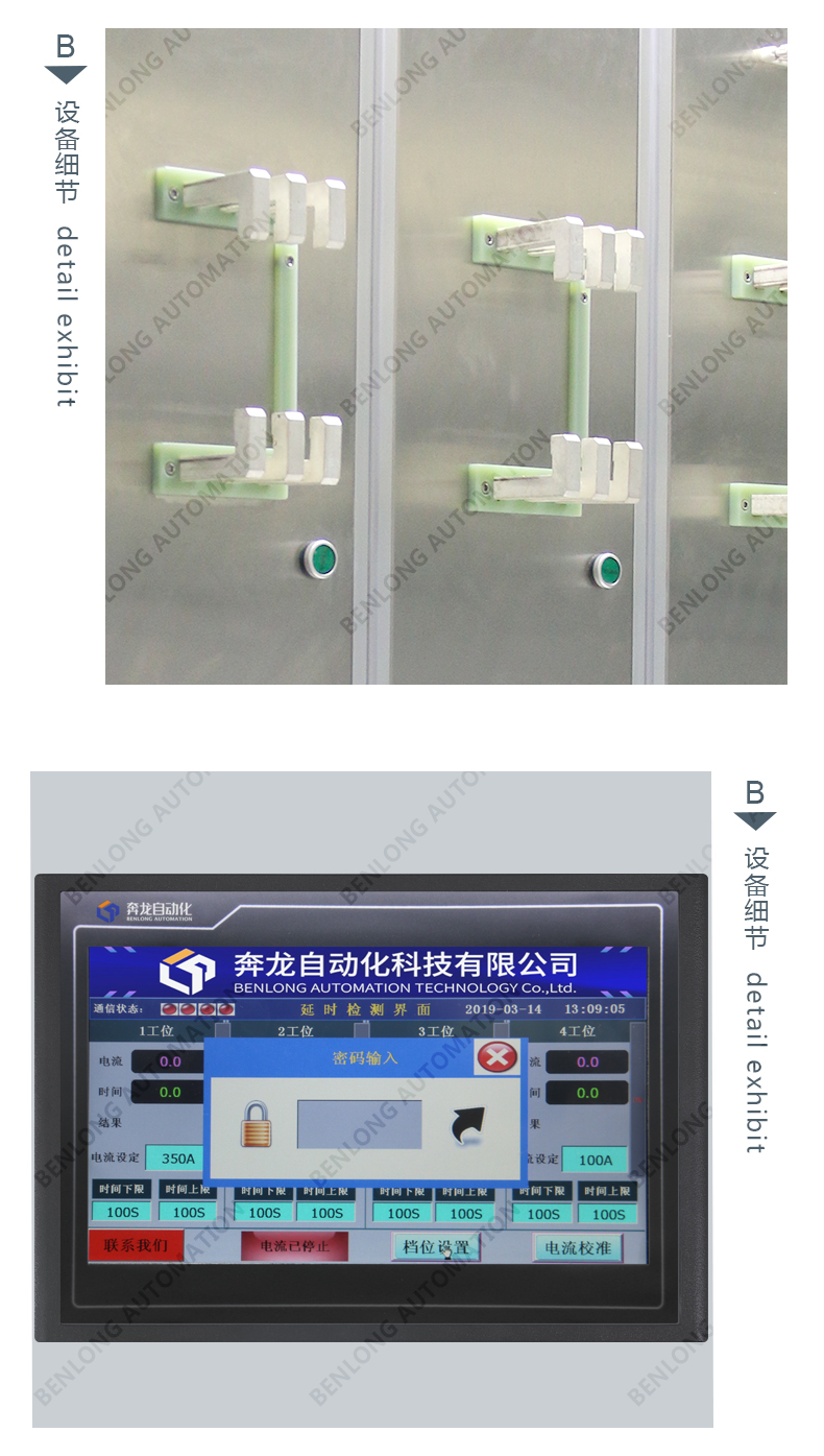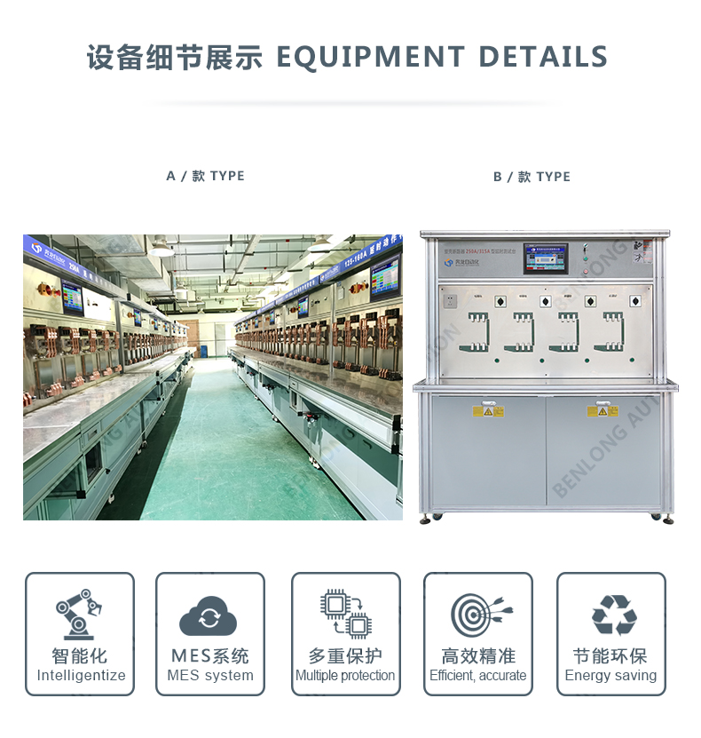 具有工位数可定制、条码识别、63A~800A兼容、不良品显示、电流精度±1%、电流可任意设定、电流自动读取、电流自动调节、脱扣时间可以任意设定、