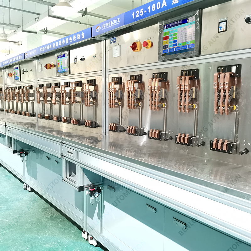 2、不同壳架产品,不同型号产品可以人工切换或一键切换或扫码切换均可;切换不同规格产品需要人工更换/调整模具或夹具。