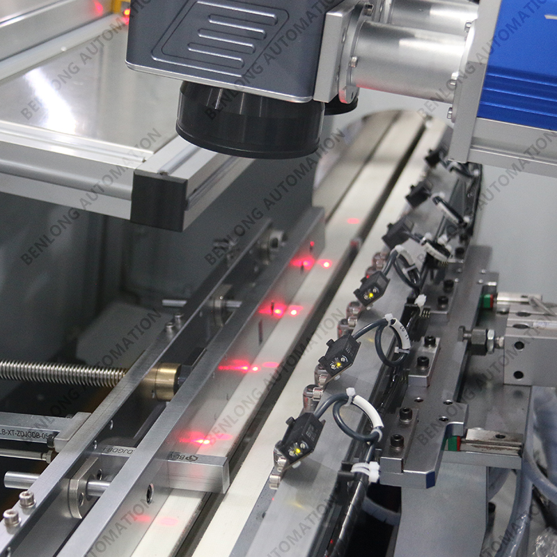 具有自动上料、精密加工、激光打标、自动下料、除尘、不良品区分、缺料报警等工序的在线监测、实时监控、