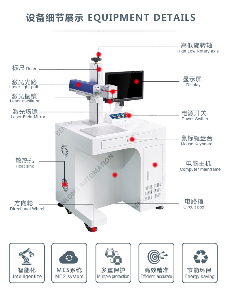 主要优点:加工速度快,是传统打标机的2-3倍。采用光纤激光器输出激光,再经高速扫描振镜系统实现打功能。