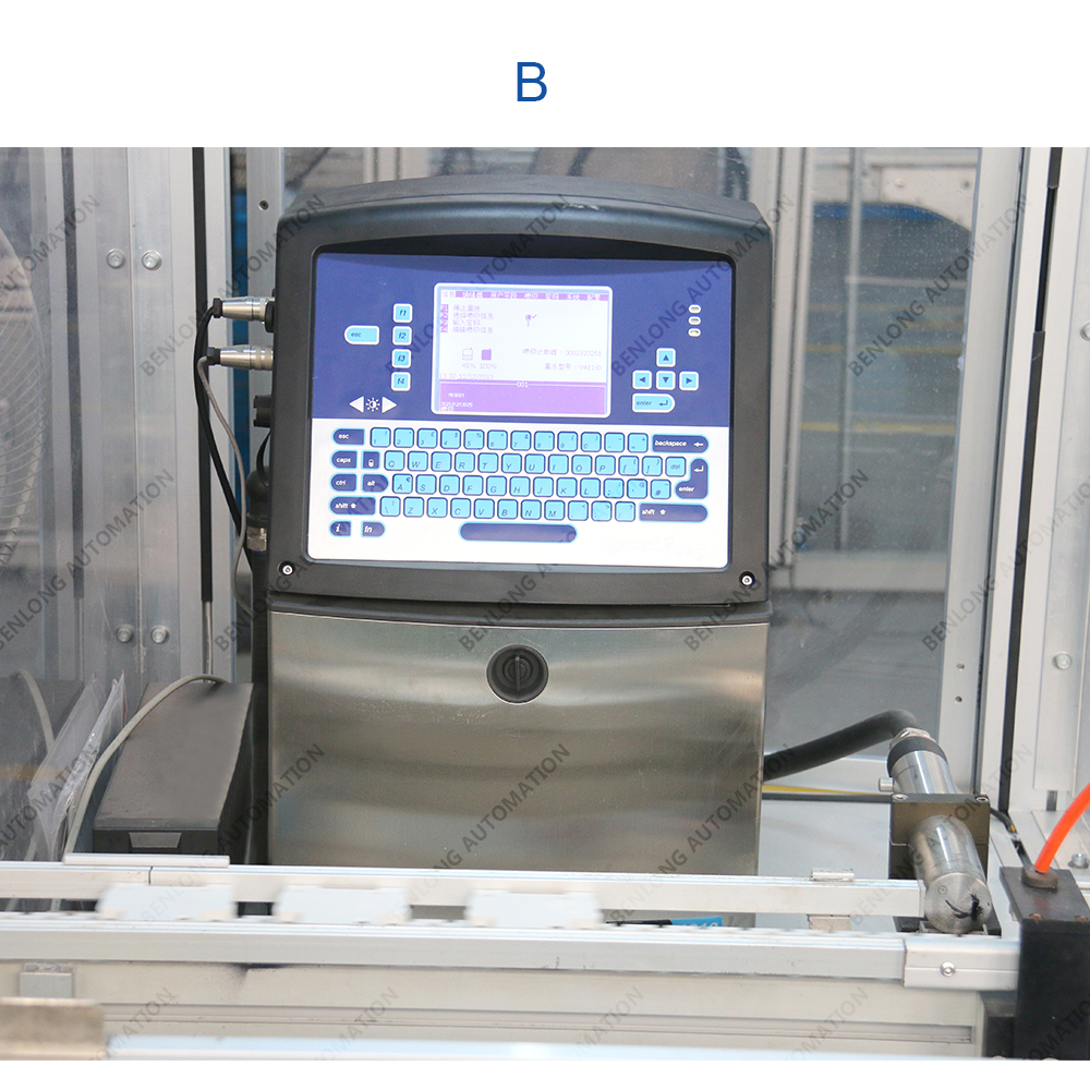 具有自动激光打标二维码、喷条形码或产品ID码、CCD检测、不良品区分、缺料报警、竖立翻转水平、水平翻转竖立等工序的在线监测、
