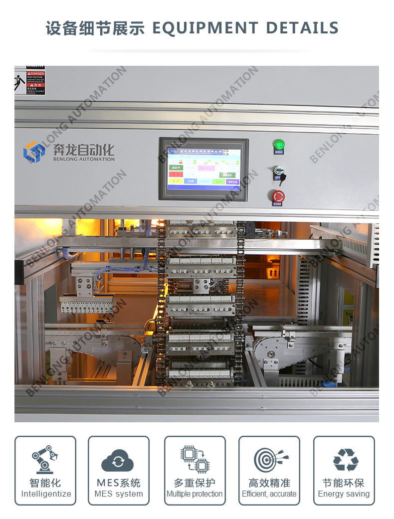 具有自动物流、输送、提升、循环、不良品区分、缺料报警等工序的装配、在线检测、实时监控、质量溯源、条码识别、元器件寿命监测、数据存储,