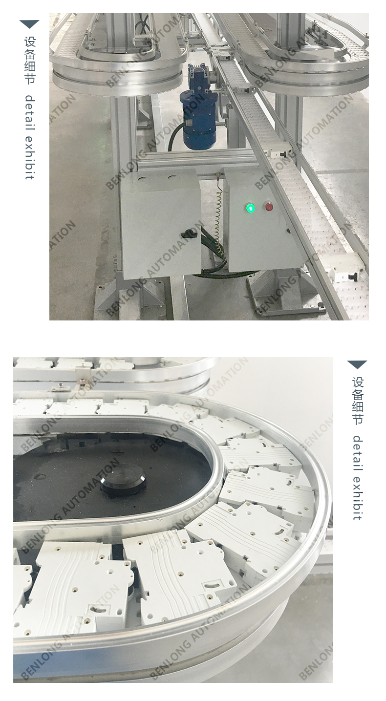 3、物流输送选配:根据产品的不同生产工艺及要求,可以采用平面皮带输送线、链板输送线、倍速链输送线、提升机+输送线、循环输送线等方式实现。