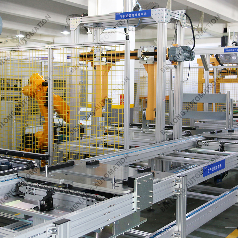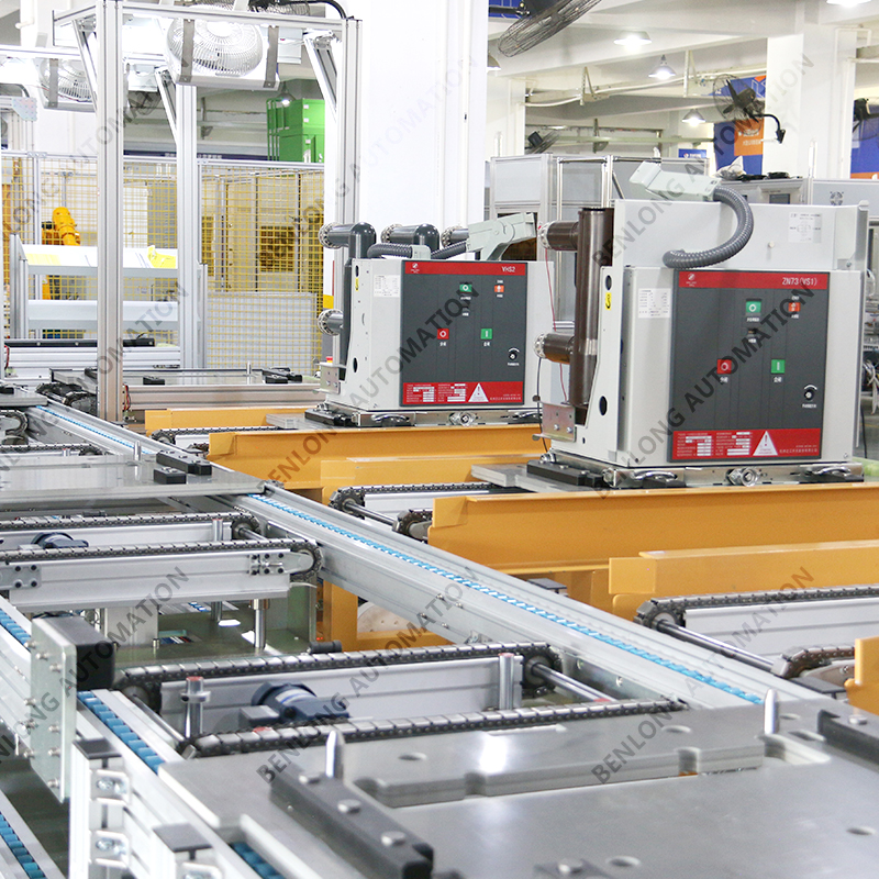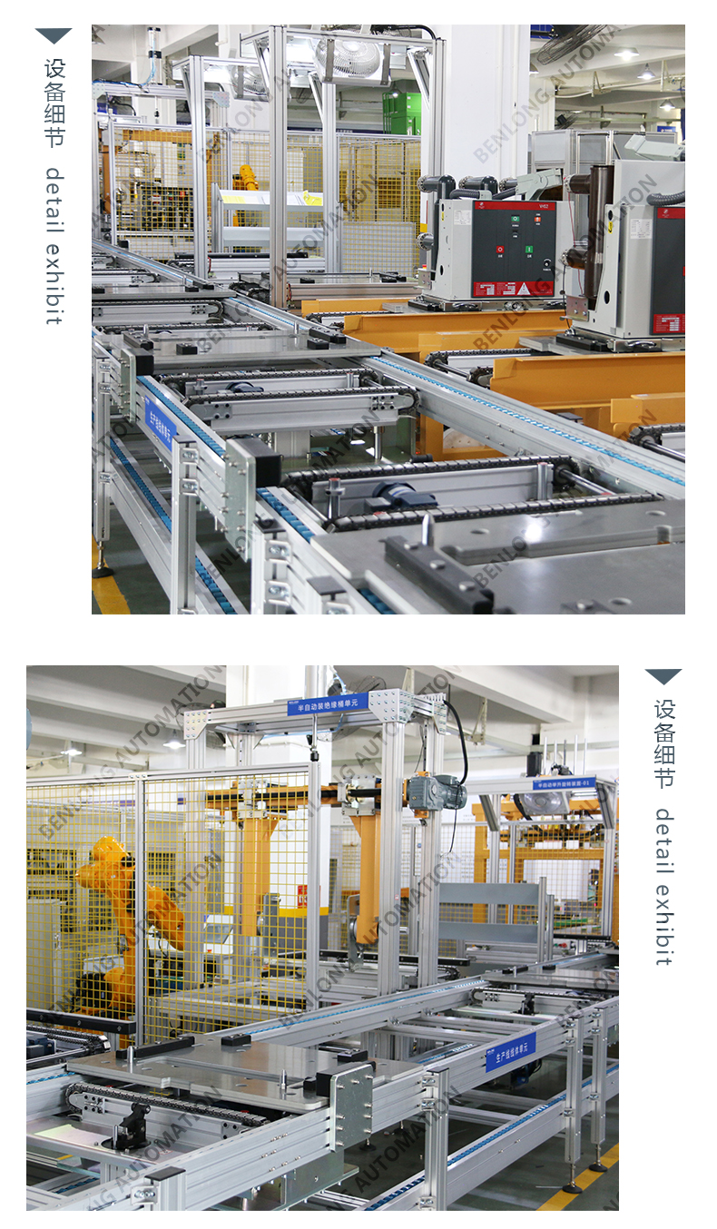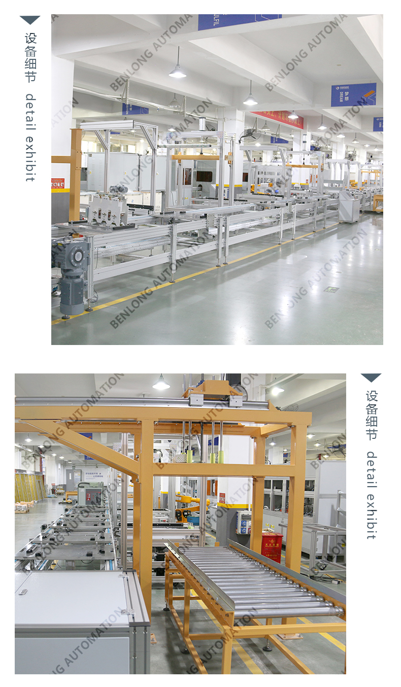 3、物流输送选配:根据产品的不同生产工艺及要求,可以采用平面皮带输送线、链板输送线、倍速链输送线、提升机+输送线、循环输送线等方式实现。
