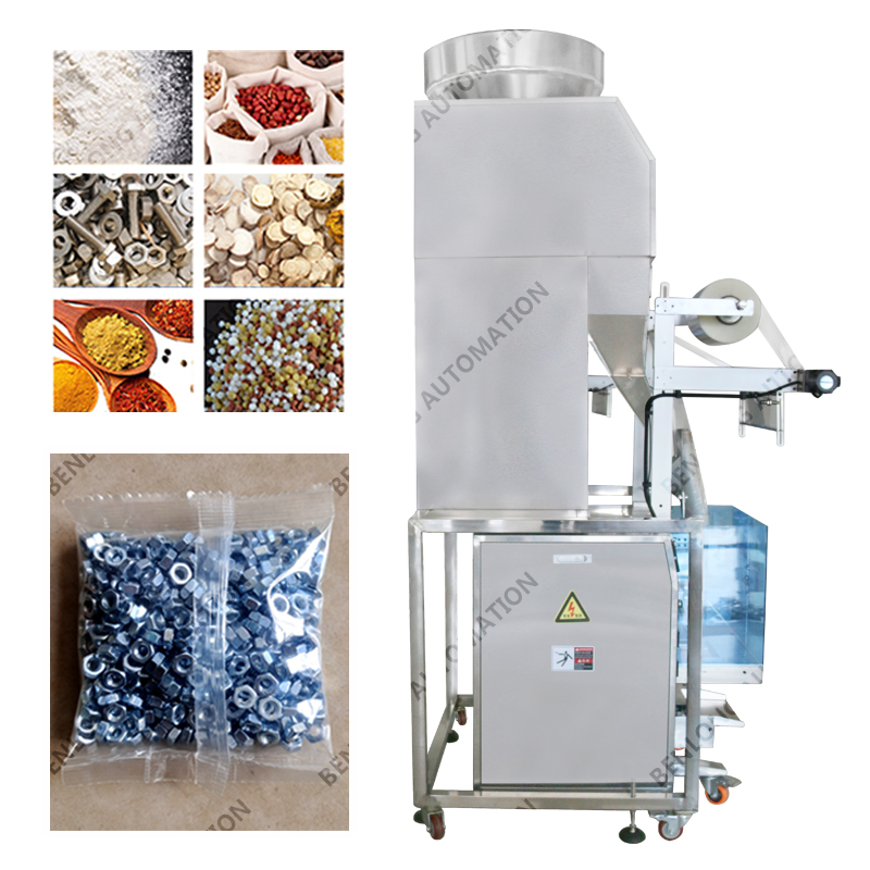 分装机自动称重,自动投料,自动感应落料,自动封切,自动出包;可单品或者多品种混合称重投料包装。