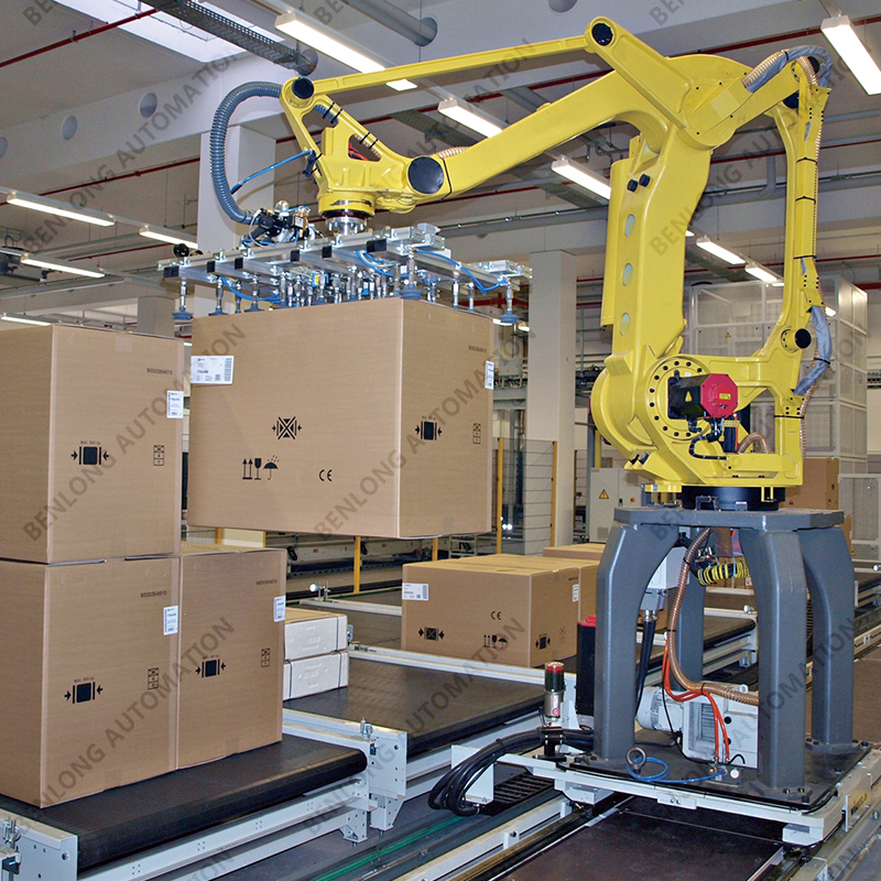 具有自动隔料分组、产品装袋、热封塑、小盒成型、产品装入小盒内、小盒贴标签、中盒成型、小盒产品装入中盒内、中盒贴标签、外箱自动成型、中盒产品装入外箱内、外箱自动贴标签、检测、喷码、封透明胶带、捆扎带、90°旋转、下料码垛、缺料报警等工序的在线监测、实时监控、质量溯源、条码识别、关键元器件寿命监测、数据存储、MES系统与ERP系统联网、参数任意配方、智慧能源分析与节能管理系统、智能装备服务大数据云平台等功能。