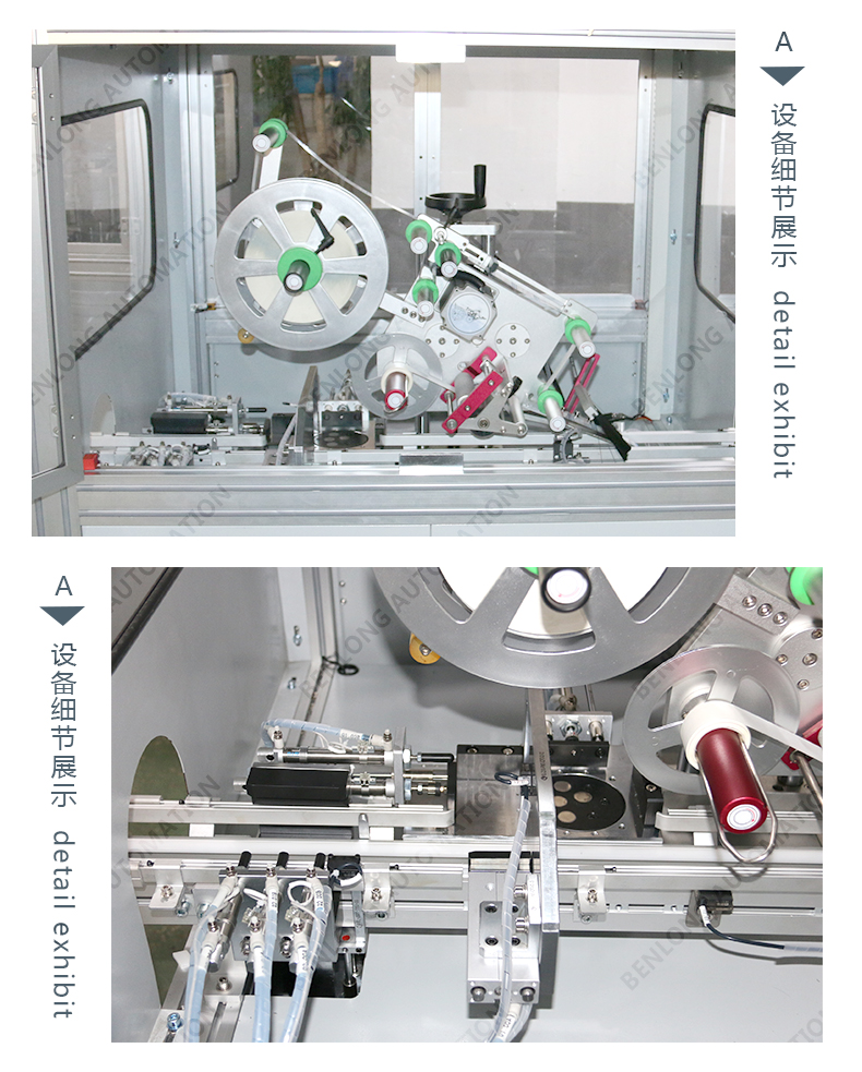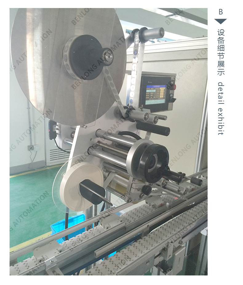具有自动贴标(二维码标签、条形码标签、ID码标签、图案等)、CCD检测、不良品区分、缺料报警、竖立翻转水平、