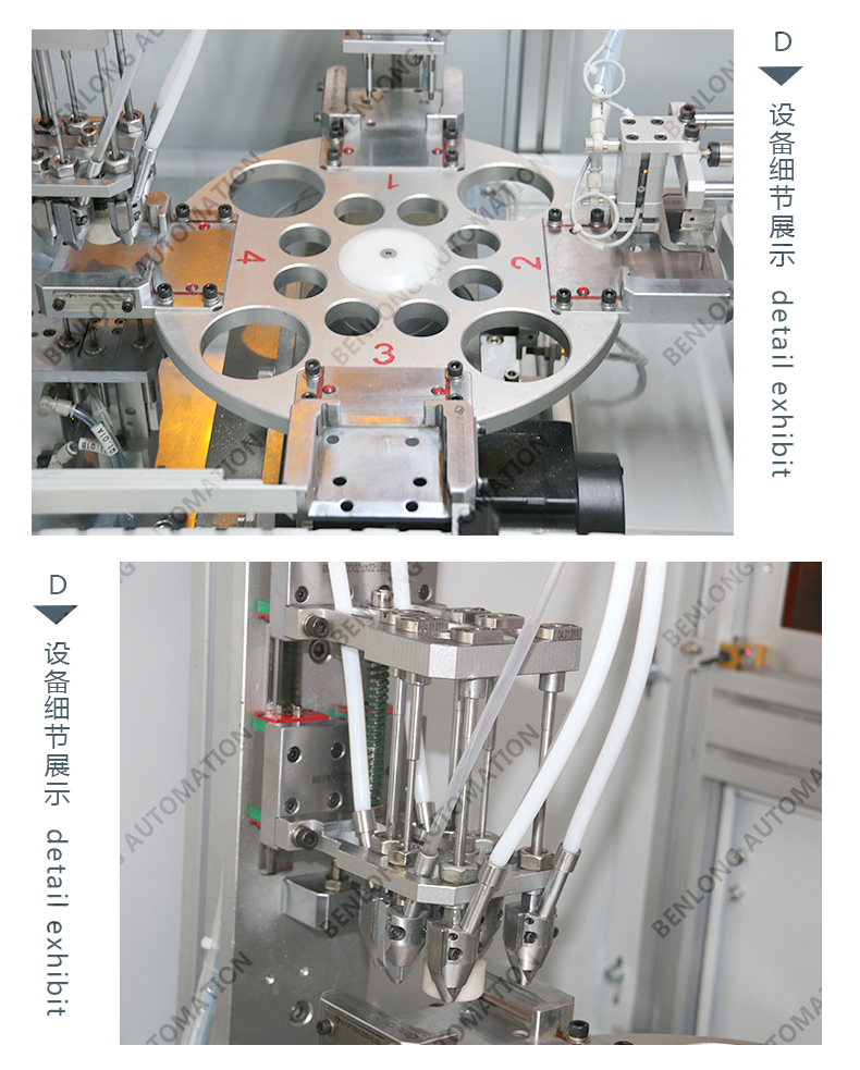 具有自动穿铆钉、CCD检测、不良品区分、缺料报警、翻转竖立等工序的在线监测、实时监控、质量溯源、条码识别、关键元器件寿命监测、数据存储、
