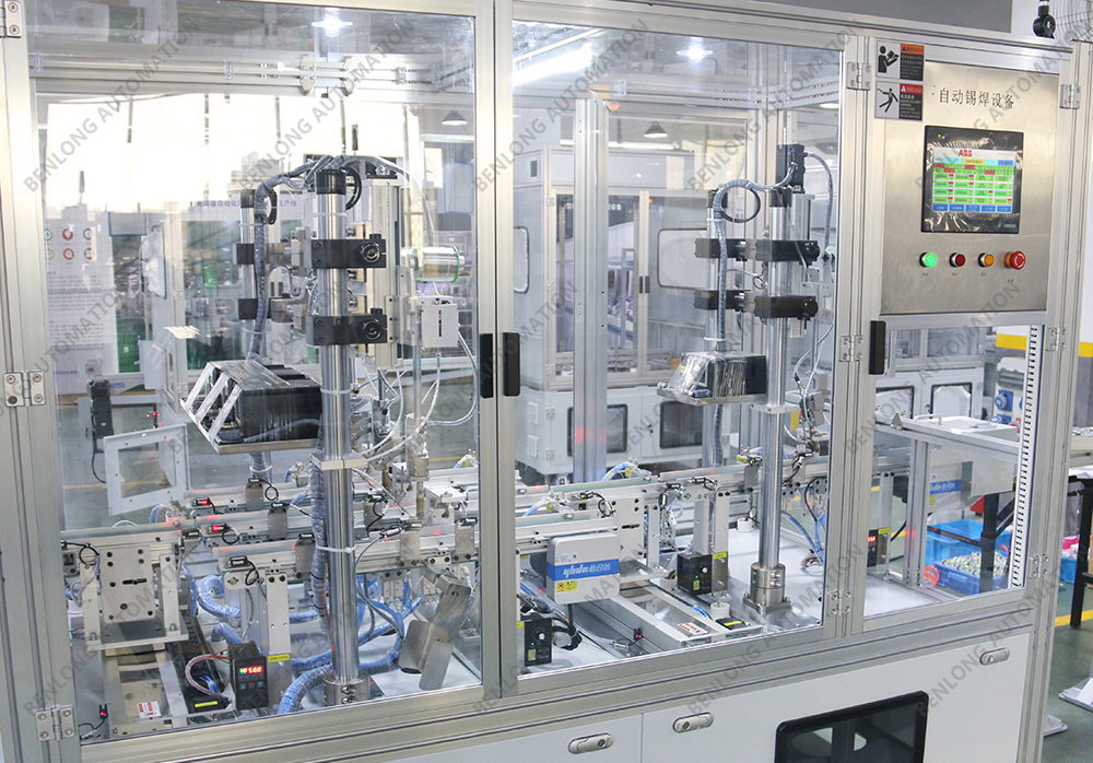具有自动装配、加注焊接辅助材料、检测、焊接、锡焊、不良品区分、包装、码垛、AGV物流、缺料报警等工序的装配、