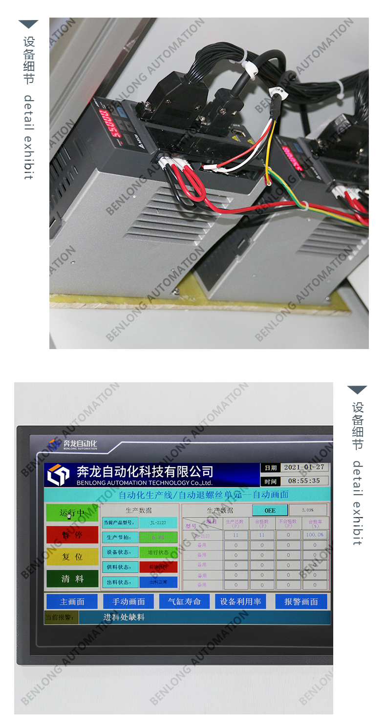 具有自动装配接线柱螺丝、自动检测扭矩、不良品区分、下料、缺料/满料报警等工序的在线监测、实时监控、