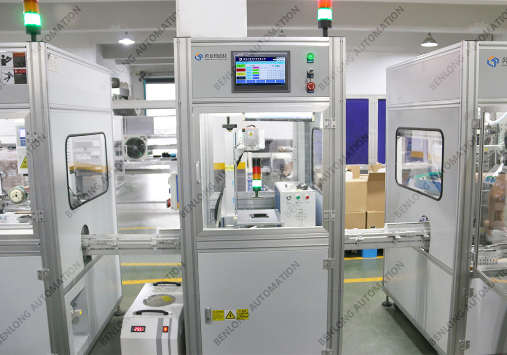 具有自动上料、自动激光打标、自动读码检测、自动下料、缺料报警、90°旋转等工序的在线监测、实时监控、质量溯源、条码识别、关键元器件寿命监测、数据存储、MES系统与ERP系统联网,